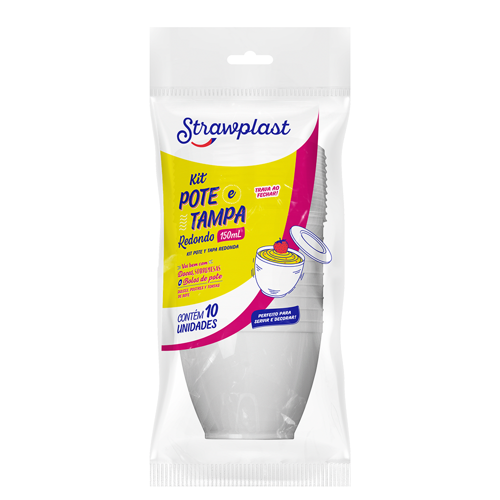 O Kit Pote e Tampa Redondo 150mL é perfeito para servir doces, sobremesas e frutas. Seu design elegante super combina com decorações em festas de casamentos, aniversários, chás de bebês, formaturas e muitos outros momentos! Além de charmoso, o Kit é fácil de fechar, deixando a tampa bem encaixada, garantindo higiene e segurança ao compor mesas e armazenar alimentos